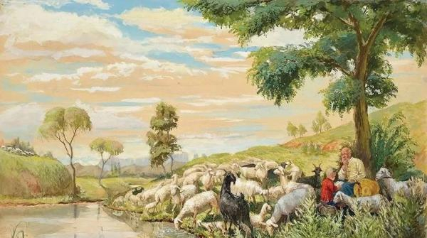 佚名(杨之光) 《放羊之余》 35.2×55.2cm 1953年