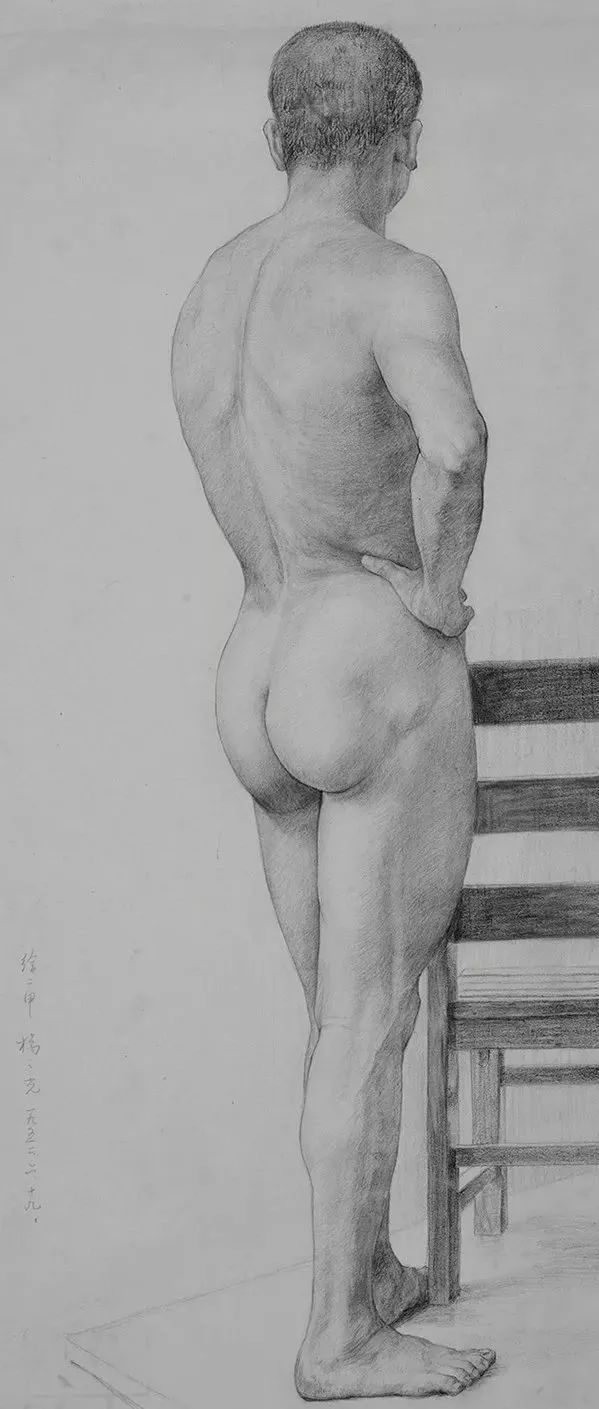 杨之光 《扶椅子的男人背像》 素描 59×38.5cm 1952
