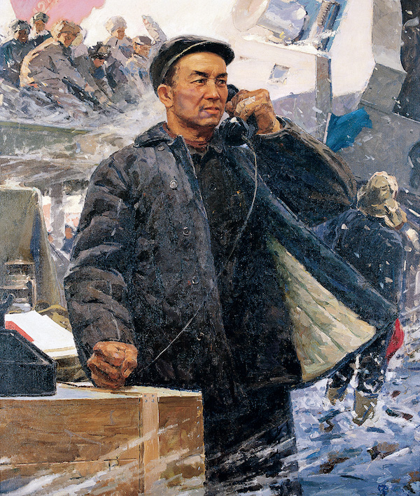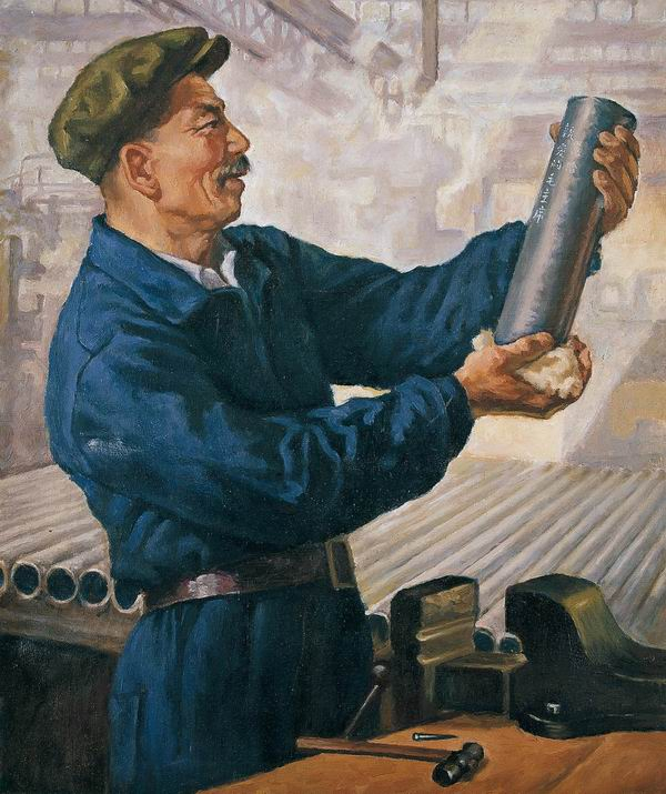 靳尚谊、傅植桂,《把第一根无缝钢管献给毛主席》,布面油彩,60×50cm,1954, 龙美术馆