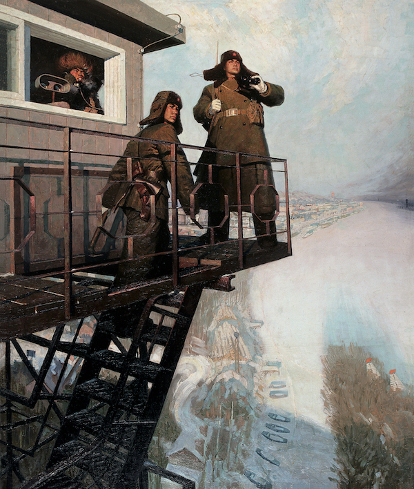 沈嘉蔚,《为我们伟大祖国站岗》,布面油彩,189×159cm,1974,龙美术馆藏