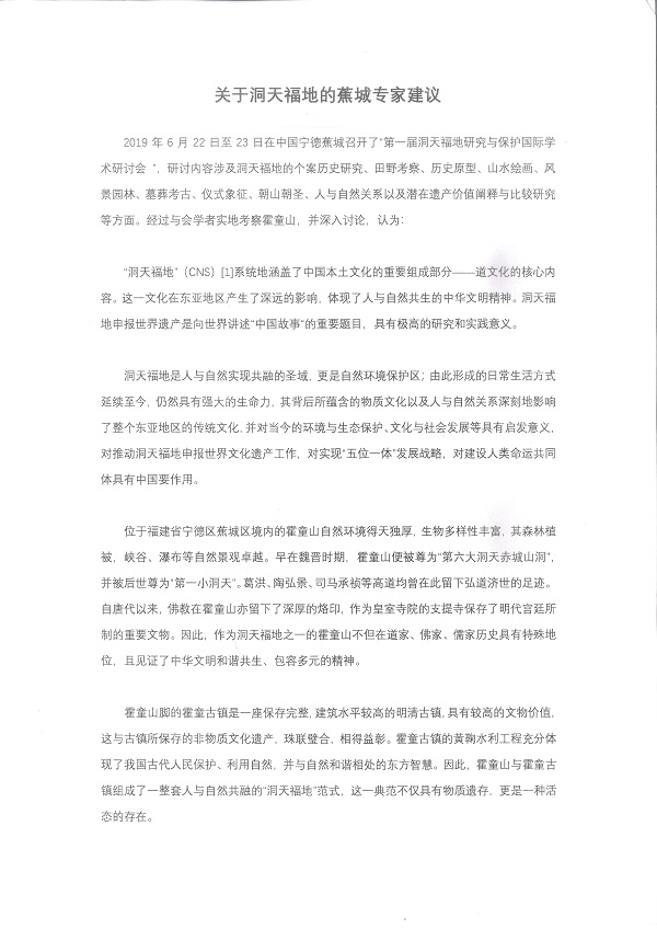 经过为期2天的会议研讨与实地考察,与会专家学者对“洞天福地”的内涵有了更深刻的认识,对其价值也进行了更进一步的阐发,最终形成“蕉城共识”——《关于洞天福地的蕉城专家建议》。