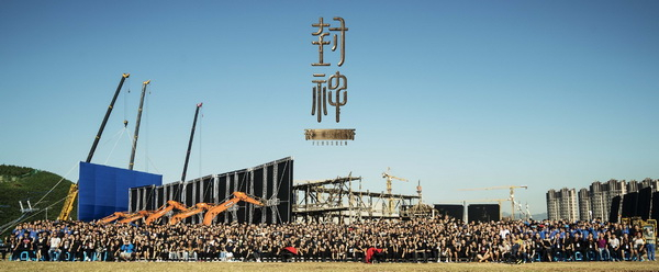 这一情形在电影开机当天的大合影中便可寻见,一见之下还是非常震撼。据说电影制作顾问巴里·M.奥斯本(《指环王》三部曲等片的制片人)也对这一彰显“中国智慧”的解决方案赞赏有加,“他在好莱坞的片场从来没见过。”《封神三部曲》制片人杜扬告诉澎湃新闻,中国电影工业化亦要本土化,“尽管导演讨厌这个‘土’字却很得意能集思广益想到了连蓝翔技校都没有的脑洞。”