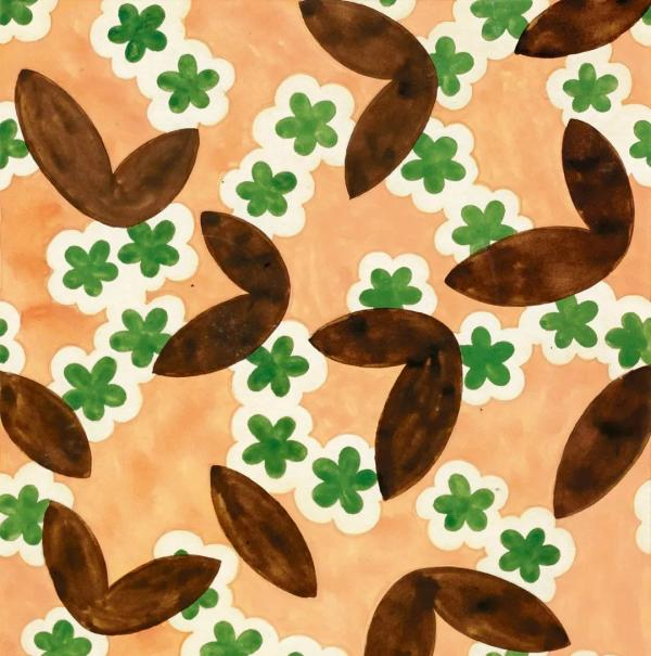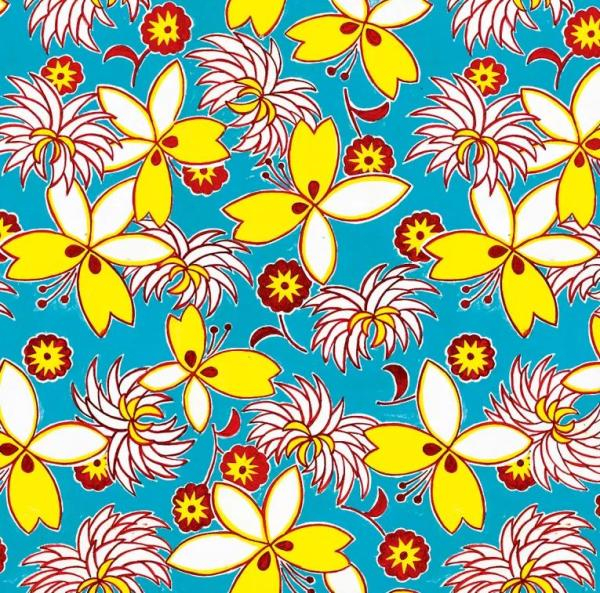 受装饰艺术影响的民国织物图案中也是以几何图形和花卉最具代表性,花卉在纺织品的设计里一直是主要题材,表现形体特点是花卉形态自然,表现方式简洁概括又富有动感,色彩特征明亮鲜艳,对比强烈的特点,喜用对比色和金属色,或是颜色较多为深色底搭配浅色叶或浅色的底上凸显深色的叶,造成强烈的、绚丽的、华美的视觉印象。