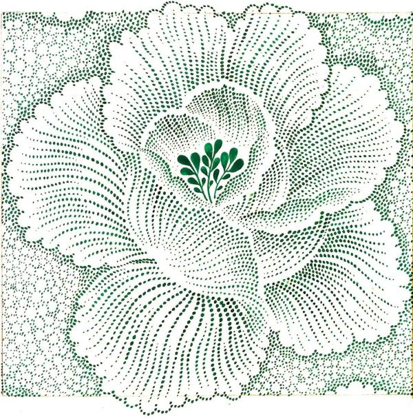 民国时期纺织图案中点的运用十分广泛,运用点的大小、疏密、轻重、虚实、反复、渐变等方法表现出图案形象的明暗、节奏、体感。由点与点的排列表现出图案表现对象,使观者依靠视觉作用去体会形体的变化。开始用纯粹的点来造型用以取代线、面在图案画面中的作用。因此,民国时期纺织图案表现形式在借鉴欧洲点彩派艺术形式基础上,使点成为图案的表现因素并且做出多种点造型的尝试,民国纺织图案获得不同于传统图案的现代性,从而丰富了图案的表现语言。