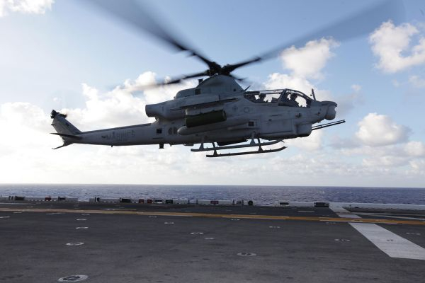 资料图片:美海军陆战队AH-1Z武直从舰上起飞。(图片来源于网络)