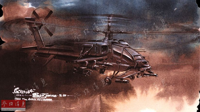 在这张设定原稿中,明显能看出这是重火力版的“阿帕奇”。