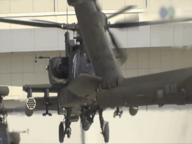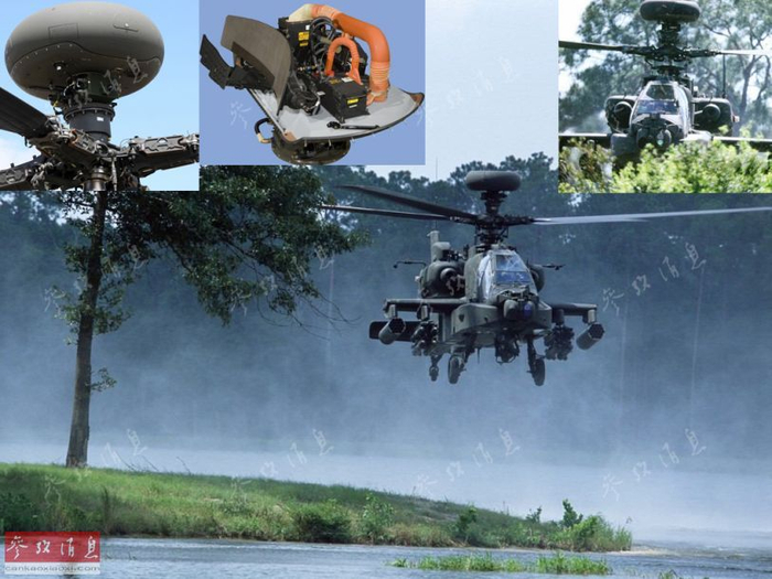 台军AH-64E武直起飞、拆装主旋翼及“长弓”火控雷达动态图。