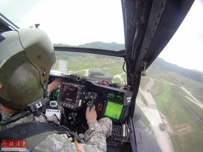 图为2015年6月,美军作战演习中的AH-64D(BlockII型)炮手。