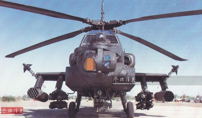 20世纪80年代,美海军和海军陆战队也曾评估过”海阿帕奇“方案,即舰载型”阿帕奇“,但结果两军种都没有采购意向,陆战队认为AH-1更适合舰载使用。图中的”海阿帕奇“挂载了4枚”鱼叉“反舰导弹。