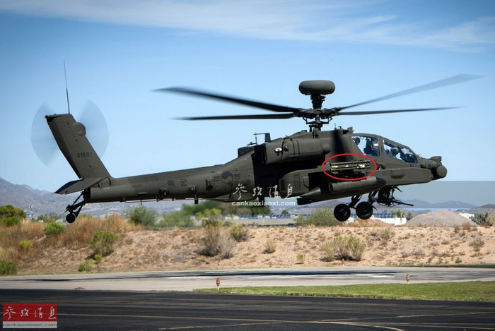 除日本AH-64DJP外,韩国陆航于2016年采购了36架最新型的AH-64E“阿帕奇守护者”,也具备发射“毒刺”导弹的能力。图为韩国陆航装备的AH-64E,注意短翼尖挂载的双联“毒刺”空空导弹发射器(红圈处)。