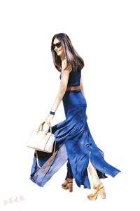 小麦色是通常所说的健康肤色,这样的肤色可以选择水墨蓝色或者是普罗士蓝色系,两者都是较深的蓝色,配上小麦色不会显得艳丽突兀,反而有种高级神秘的感觉。水墨蓝的连衣裙会让小麦色的女生看起来更加的健康阳光,而且非常的沉寂有韵味,搭配一条开衩裙会让女生透着一种与众不同的性感味道。