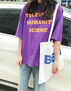 甜美又浪漫的紫色T恤,宽松的款式,微胖女孩穿上也会很显瘦,经典又大方的圆领,很小清新的香芋紫色,搭配起来也很容易,再配上破洞的牛仔短裤很时髦又清凉,上衣不规则的侧边镂空破洞设计,青春又时尚,塞衣角的穿搭方式让整个人视觉上更显高。