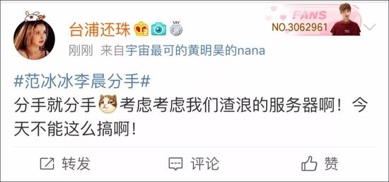 二人微博发出不到十分钟#范冰冰李晨分手#话题即登上热搜第一,微博服务器也未能“幸免”,直接瘫痪……