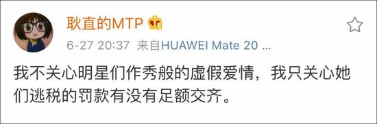 对于此次范冰冰李晨官宣分手,有网友表示,只关心她的罚款有没有交齐。