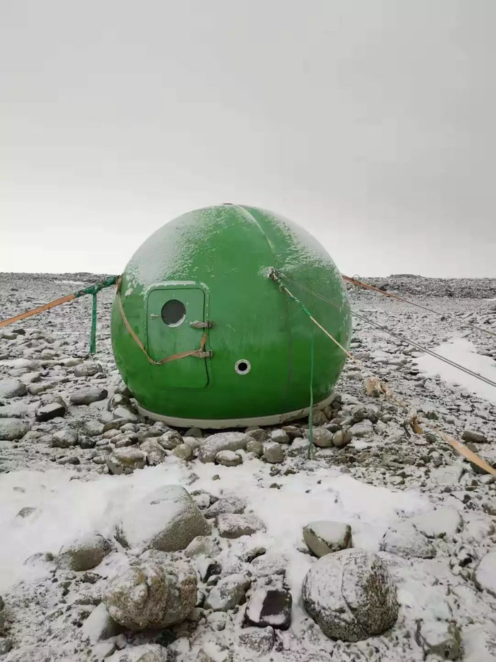 30公里外的韩国站的天气预报还是很准,自14号以来,天就一直阴沉沉的,雪终于在1月18日飘下来。真的是瞬间,周围全变白了。因为没有任何地标,如果没有导航是肯定迷路的。石头都被雪盖住了,特别容易崴脚和扭腰。队长通知我们呆在原地,不要出去作业。大风呼啸了两天,大雪飘了两天后终于停了。就在我们决定去采样执行科考任务的时候,队长突然通知让我们集体回站区。我很忐忑,担心是不是新站队员在安装风机或者铺设管道作业时出了什么问题。朱老师凭着多次来南极的经验猜测有可能是雪龙船出事故了。