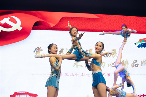 孝陵卫街道大工委成员单位和各社区还精心准备了一台文艺汇演。江苏省农科院的女声小合唱《不忘初心》、《越走路越宽》,农科院社区的小合唱《我们的生活充满阳光》,铁匠营社区朗诵及混声大合唱《共和国之恋》等节目,用嘹亮的歌声传达了对祖国的热爱,一首首振奋人心的红色歌曲,一段段慷慨激昂的红色旋律,让整场活动都沉浸在一种浓浓的爱国热情中,现场掌声不断、喝彩声不断。《共度好时光》、《唱支山歌给党听》、《我爱你中国》、《双脚踏上幸福路》、《共圆中国梦》等5个舞蹈节目,用优美的舞姿表达了对党的无限热爱和对新时代新生活赞美。由南京体育学院江苏省技巧队带来的《最美的期待》把现场的气氛推向高潮,表演者都是运动健儿,他们从赛场走上舞台,展示了运动技巧和本领,让现场人员领略了敢拼、敢为、敢先的运动精神,也展示了孝陵卫区域党建合作交流的成果,更是对今后“钟山先锋”党建工作的鼓励。