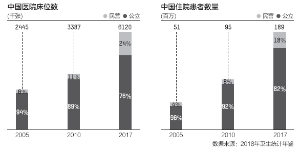 但社会办医数量的蓬勃,并未带来诊疗人次的大幅增加。数据也显示,2018年民营医院诊疗人次5.3亿人次,仅占诊疗人次人数的14.8%,绝大部分诊疗仍发生在公立医院。在病床使用率上,民营医院也远不如公立医院,前者只有六成的使用率,公立医院却高达九成。而这背后,有诸多原因限制。