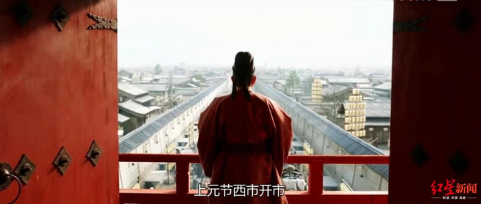 另一方面,该剧在服化道上也值得称道。如一开篇的长镜头,就将盛唐长安城的一处街景表现了出来:上元节,朱楼之上,歌姬吟唱着李太白的诗作。街道有小吏挂上贴有上元节字号的灯笼,一旁还有唐时的下水道。商铺灯笼起火,正在门前洒水除尘的店小二赶紧用水盆接满水,有宏大有细节,既有烟火味又有后人对盛唐万人来朝、繁华至极的幻想。