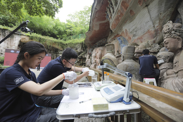 6月29日,工作人员对造像进行超声波检测。