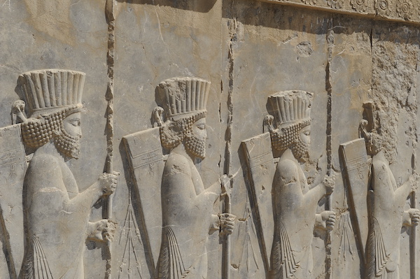 只需一眼,任何人都会为波斯波利斯巨大的建筑遗迹所倾倒,它们像远古巨兽的遗骸般庄严,并且令人生畏。万国门、百柱宫、奥帕荡瑙大殿……根据浮雕不难想象,当年来自吕底亚、犍陀罗、巴比伦的使节,是如何牵着骆驼、手捧黄金和香料,心怀敬畏地穿过这些庄严的石头长廊,而波斯王大流士就坐在长廊尽头的宝座上。