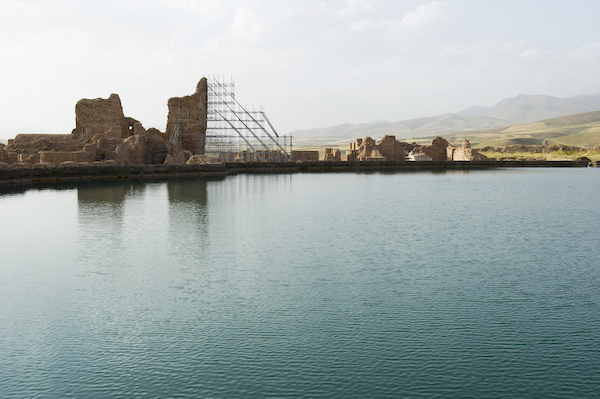 伊朗最美的拜火教庙宇Takht-e Soleiman在北部西阿塞拜疆省的山区中,山顶的残垣断壁,映在不知从何而来的一池永不枯竭的碧水中。名字意为“所罗门的宝座”,当地人用此隐瞒它火庙的身份,骗过阿拉伯人,逃过被摧毁的命运。