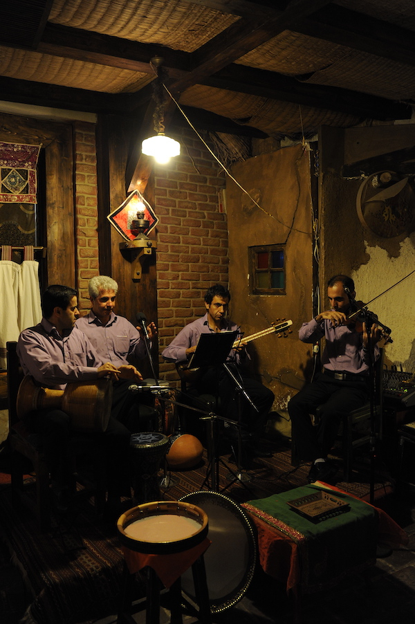 在德黑兰的最后一晚,我来到酒店的传统餐厅喝茶。斋月,人们不会错过在日落后美餐一顿的快乐,每张桌前和每张软榻上都坐满了人。9点过后,一个四人男子传统小乐队开始表演。在对音乐态度谨慎的伊斯兰世界,这很少见。冬不拉、手鼓和小提琴欢快地奏响,歌声随之而起。餐厅里的每个人开始用力地鼓掌、打拍子,孩子般毫无顾忌地开怀。