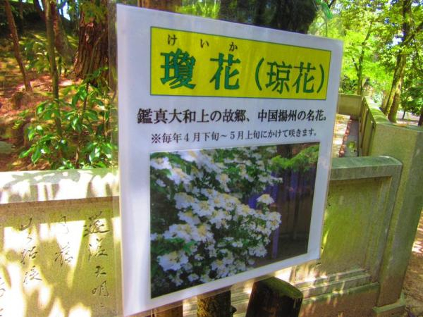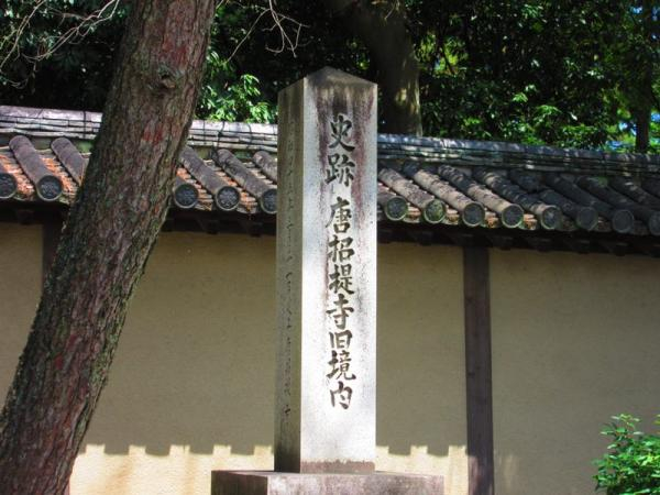 御影堂,寺内一座十分考究的寝殿式建筑,是森本长老移筑旧一乘院宸殿建成的。堂内安放着的鉴真大师的圣像,是从附近的开山堂奉迁过来的。鉴真和尚自接受远赴日本国传授戒律的邀请,冲破阻挠和艰险,历时十余载,六次渡海,九死一生,宏愿不改。何以?“心曲千万端,悲来却难说。”这一声慨叹,岂不知饱含了几多泪!难怪开山堂前的石碑上刻着日本诗人芭蕉的诗句:“绿叶滴翠,为师拭去眼中泪。”读罢,莫不令人肃然起敬。