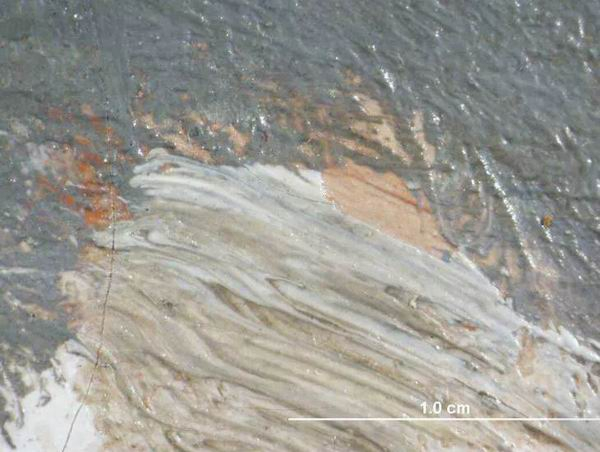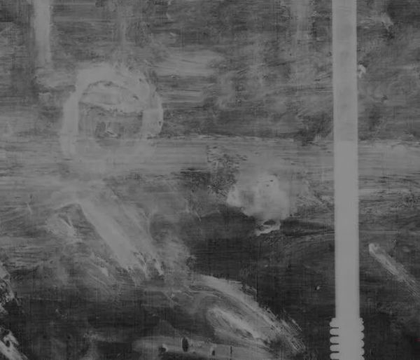 X光与自然光下呈现卡米尔右侧曾破洞处