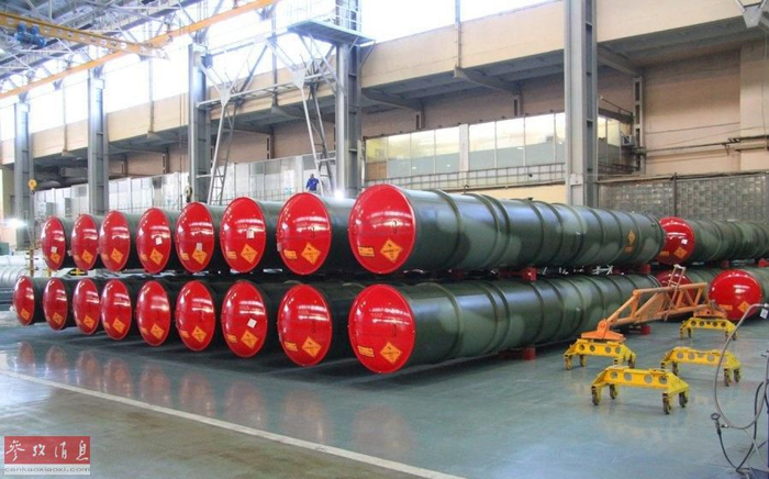 已组装完成并等待出厂的S-400远程防空导弹(已装入发射筒封存)。