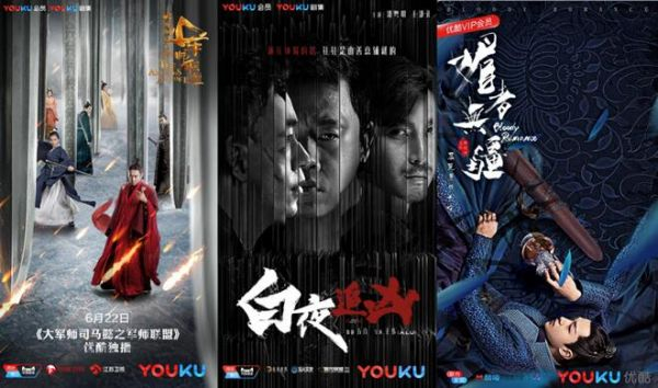 (左起)电视剧《大军师司马懿之军事联盟》、《白夜追凶》、《媚者无疆》海报拼图(优酷供图)