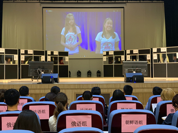 图说:上海外国语大学第二届多语种接力同传赛 学校供图