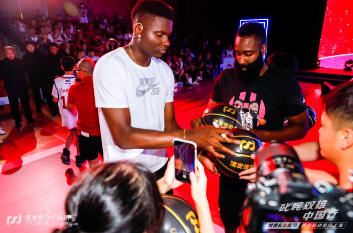 6月29日,浦发银行信用卡在普陀体育馆开启“叱咤双雄中国行”活动,这也是篮球巨星詹姆斯·哈登与卡佩拉首次联袂登陆上海。