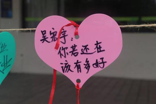 其中的一张留言格外引人注目,心形的纸片上写着:“吴宏宇,你若还在,该有多好。”