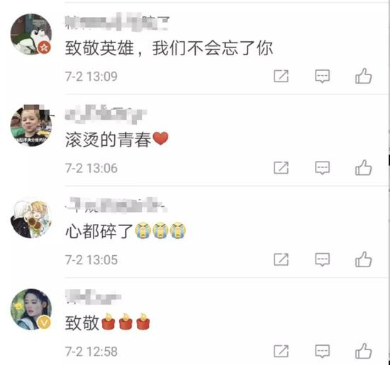 有网友留言:“英雄已逝,但不会被遗忘!”