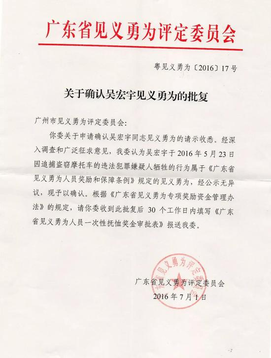 追截中,吴宏宇被偷车人驾驶的摩托车撞击后摔倒受伤。经过3个多小时的全力抢救,终因伤势过重离世。