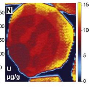 (U-Th)/He定年技术作为一种限定低温地质过程的热年代学方法,近几十年在研究地壳浅部地质过程以及地貌演化等方面得到广泛应用。同其他同位素年代学方法一样,(U-Th)/He需要已知年龄的标准样品来监控实验流程以及未知样年龄结果的可靠性。然而,国际上广泛使用的标样Durango磷灰石存在着年龄分散(分散程度远大于分析误差)以及颗粒内部铀、钍分布不均一(图1)等局限性。标样年龄的分散导致了难以准确监测未知样品年龄结果的可信度。