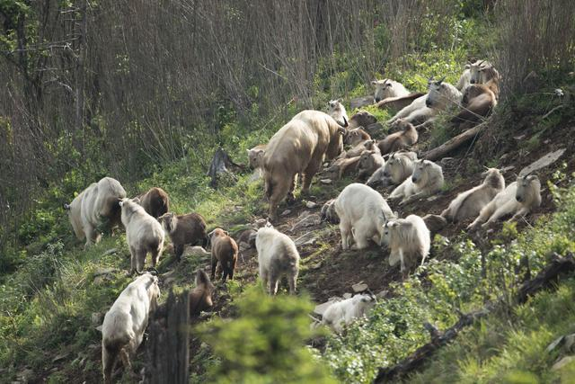 陕西省林业局局长党双忍说,近年来,随着生态保护力度不断加强,加之持续实施退耕还林、天然林保护等一大批林业生态项目,严厉打击破坏秦岭野生动物资源违法犯罪,为秦岭羚牛繁衍生息创造了空前优越的外部条件,时常可以观察到不同区域的几十头乃至上百头的秦岭羚牛聚群繁殖,成为秦岭一道靓丽的风景。
