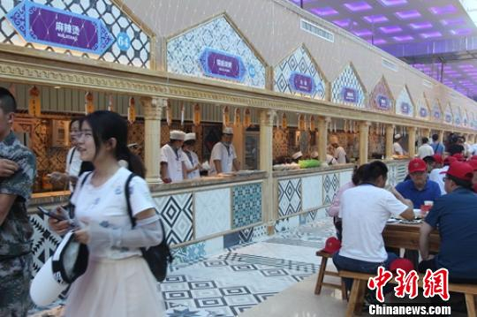 3日傍晚,新疆克州“风情街”开街,美食文化走廊游人如织。 陶拴科 摄
