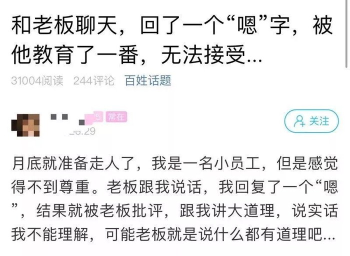 前有浙江姑娘和老板聊天回了个“嗯”被老板批评教育不懂基本礼仪。