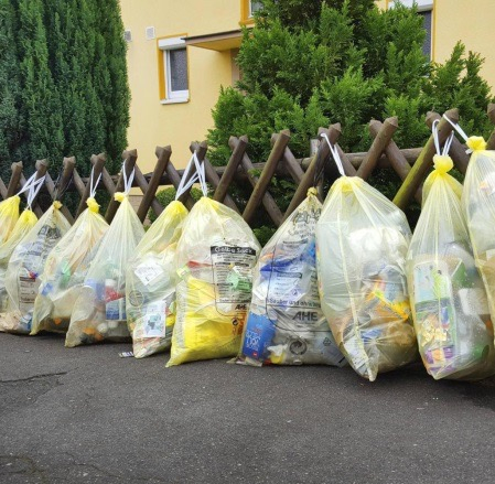 黄色垃圾袋(可回收包装物)回收日的街头一景,很德国
