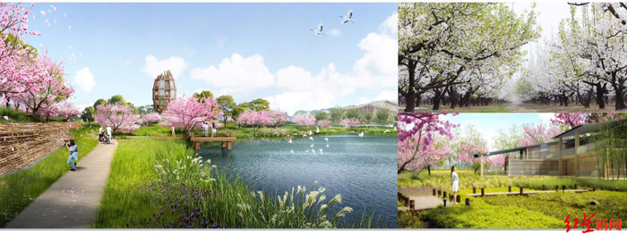同时锦城绿道东片区以“沃野天府 桃源芳草”为主题,以果树、草本植物为特色,结合大面积基本农田、现状水塘,营造具有乡村韵味的郊野绿道景观。