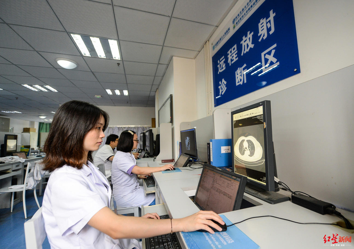 ↑ 2019年7月4日,成都市第三人民医院的远程放射诊断区。