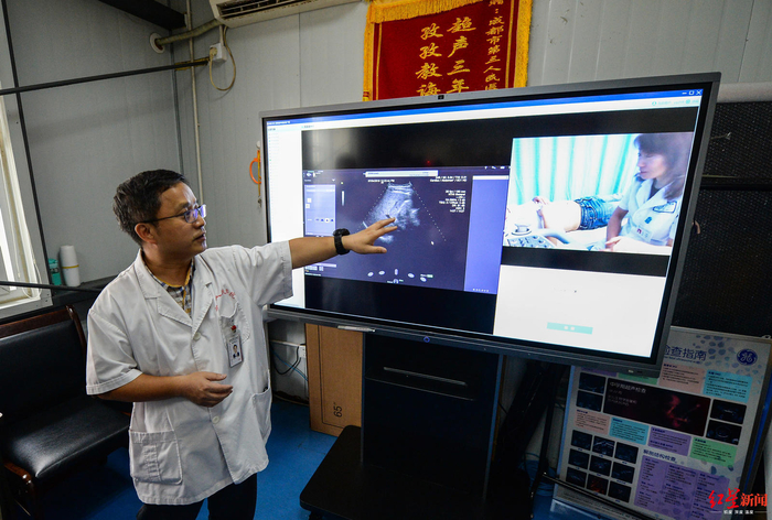 ↑ 2019年7月4日,成都市第三人民医院的5G超声远程会诊。