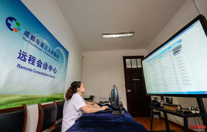 ↑ 2019年7月4日,成都市第三人民医院的远程会诊中心。