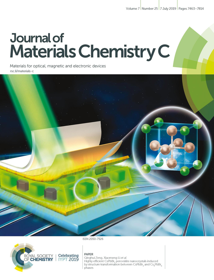 近日,中国科学院长春光学精密机械与物理研究所副研究员曾庆辉课题组提出一种由于CsPbBr3和Cs4PbBr6的结构转变诱导的高效荧光钙钛矿纳米晶,所制备的钙钛矿纳米材料的荧光量子效率可达99%,并将这种高荧光量子产率的材料应用于LED器件方面,该工作对于钙钛矿量子点在光电器件领域的应用具有十分重要的意义。该成果发表在英国皇家化学学会的Journal of Materials Chemistry C 杂志上(J. Mater. Chem. C, 2019, 7, 7548--7553),并被杂志选为首页封面文章。该文章的第一作者是在读博士研究生苏莹,通讯作者是曾庆辉。