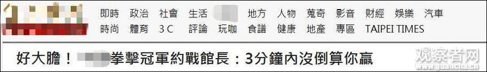 台湾网红遭大陆搏击冠军约战 曾呛声大陆“有种现在打过来”