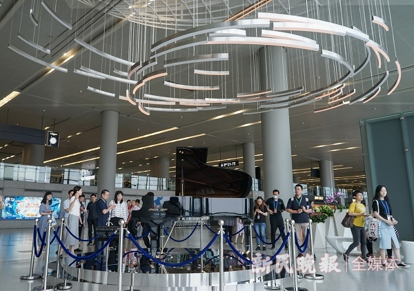 图说:虹桥机场T2航站楼公共装置艺术“银河畅想曲” 新民晚报记者 陈梦泽 摄(下同)