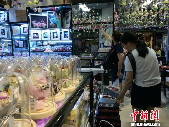 图为市民在斗南选购花卉制品。 胡远航 摄