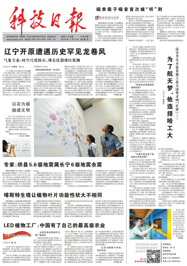 哈工大报讯(肖克/文)7月5日出版的《科技日报》在头版显要位置报道了来自上海市控江中学应届毕业生严一粟为了追逐心中的航天梦、毅然选择报考哈工大的故事。报道全文如下: