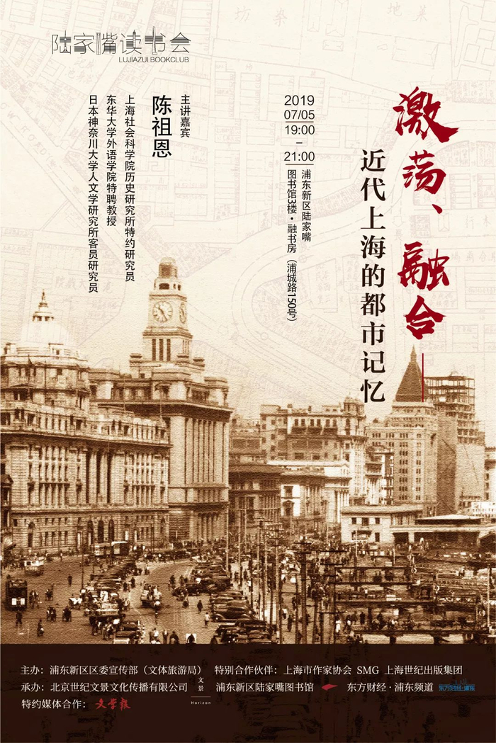 本周五晚,陆家嘴读书会邀请到上海社会科学院历史研究所特约研究员、东华大学外语学院特聘教授、日本神奈川大学人文学研究所客员研究员陈祖恩,带领大家追溯上海这座城市的记忆,从身边建筑物的历史和背后的故事中,更深刻地体会这座城市的性格。